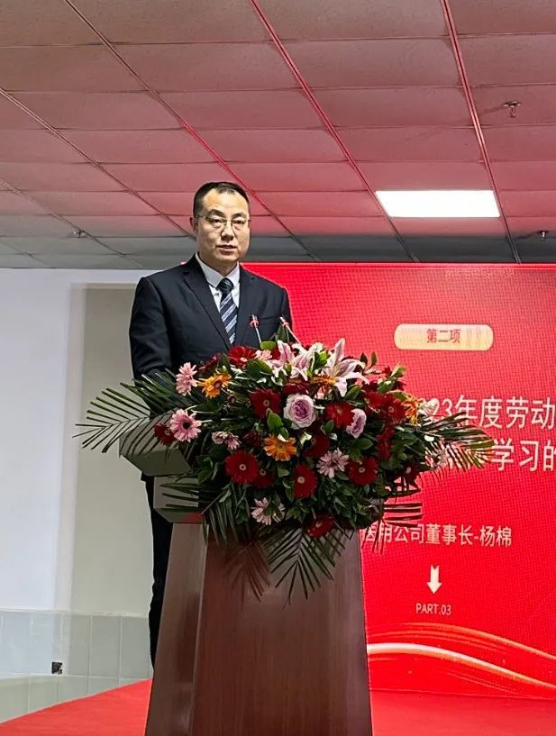 第二項:醫(yī)用公司董事長 楊棉宣讀《華寶集團開展向2023年度勞動模范、先進工作者、先進集體學習的通知》